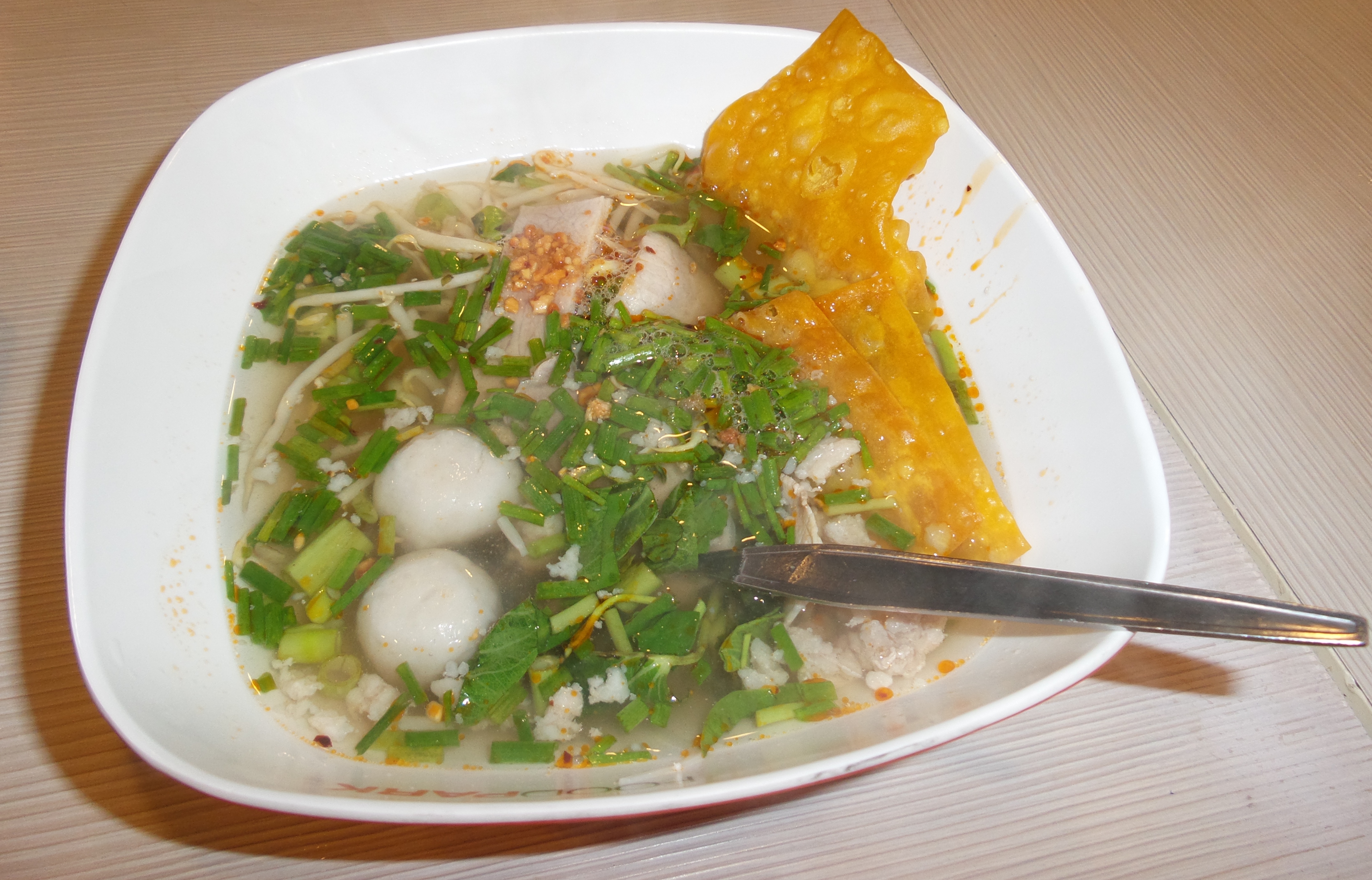 Gǔai dtǐao nám (ก๋วยเตี๋ยวน้ำ) – rice noodle soup with pork balls
