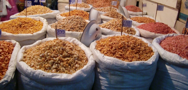 auf einem der vielen Märkte, getrocknete Garnelen