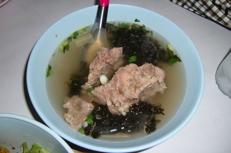 dazu eine Brühe mit Rinderknochen und Seetang