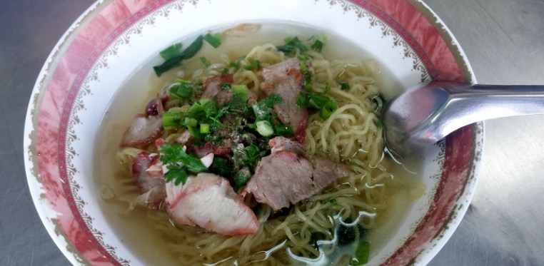 Nudelsuppe diesmal mild mit Schweinefleischstreifen