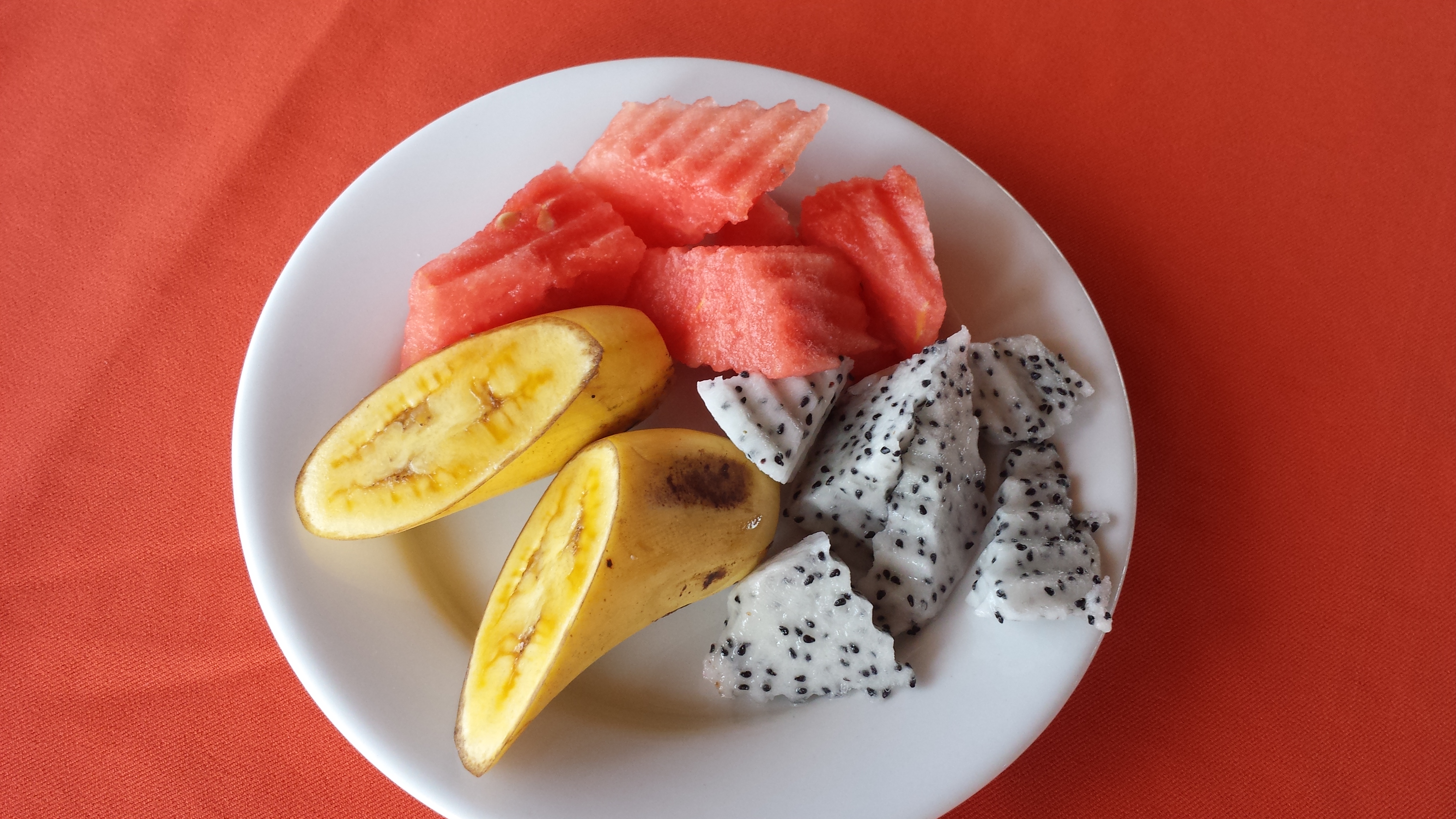 kleiner Obstteller (Banane, Wassermelone, Drachenfrucht)
