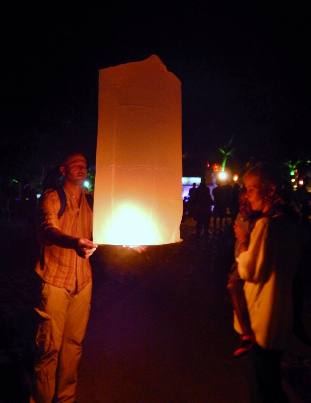 Wir lassen eine Laterne mit unseren Wünschen für 2015 steigen.