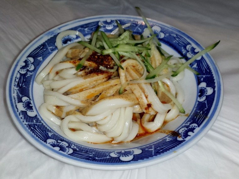 Kalte Nudeln mit scharfer Sesamsauce, Spezialität aus Xi’an und genau unser Geschmack.