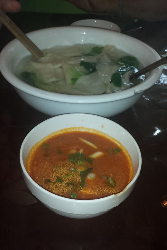 Die lange Nudel (ca. 1 Meter) mit Tomatensauce, auch eine Besonderheit aus Xi’an. Lange Nudeln stehen in China für ein langes Leben. Daher gilt: Je länger, je besser.