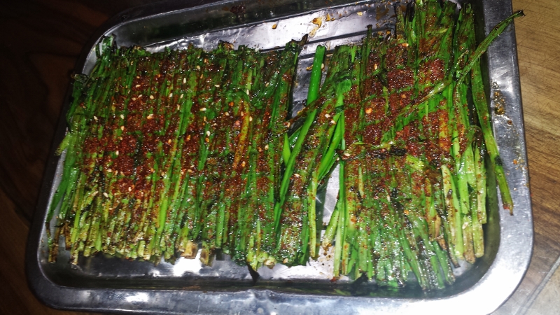 Lauchzwiebeln mit orientalischen Gewürzen. Mit Gewürzen wird hier nicht gespart.