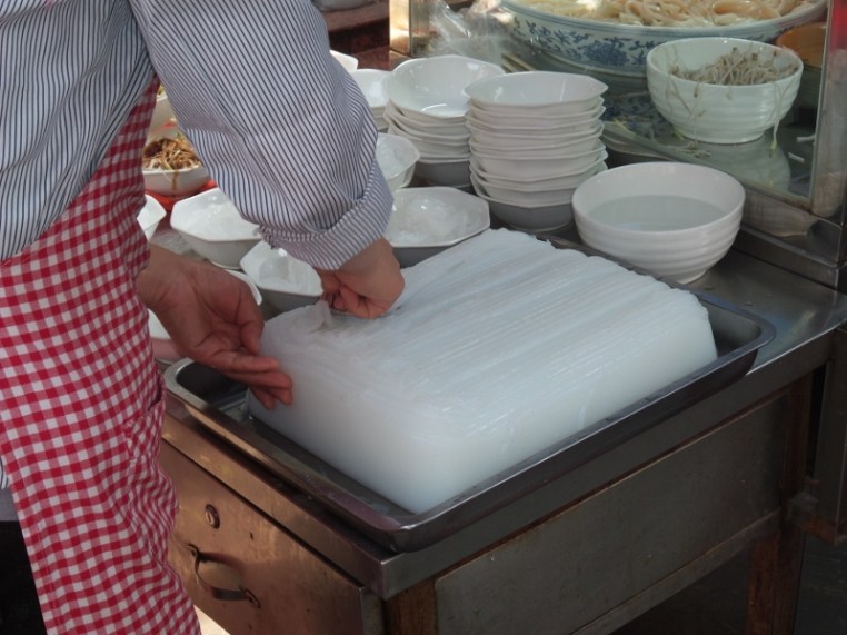 Liangpi: kalte Nudeln aus Reisstärke werden mit Sesamsauce serviert
