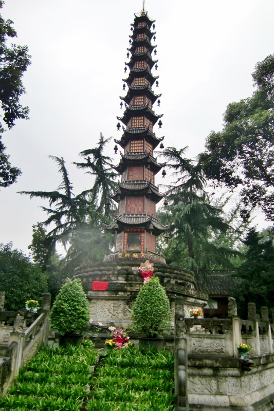 Vor dem Wenshu Yuan Kloster steht die „Peace Pagoda of One Thousand Buddhas“, die größte eiserne Pagode in China.