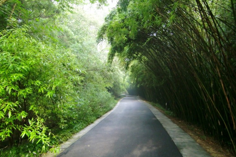 Wunderschöne Weg führen durch den Park. Der Bambus spendet Schatten.