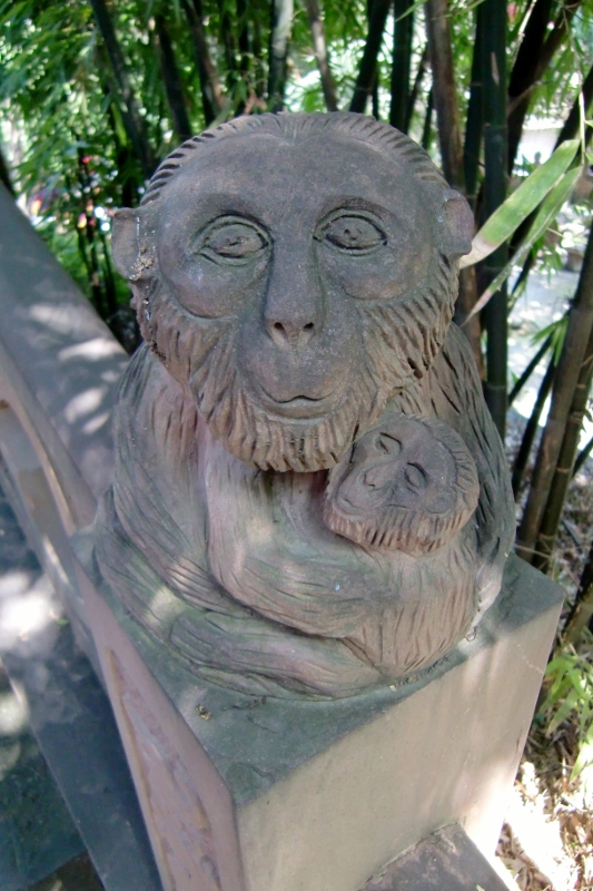 Ein schön verziertes Ende einer Brücke im Qingyang Taoist Temple Park