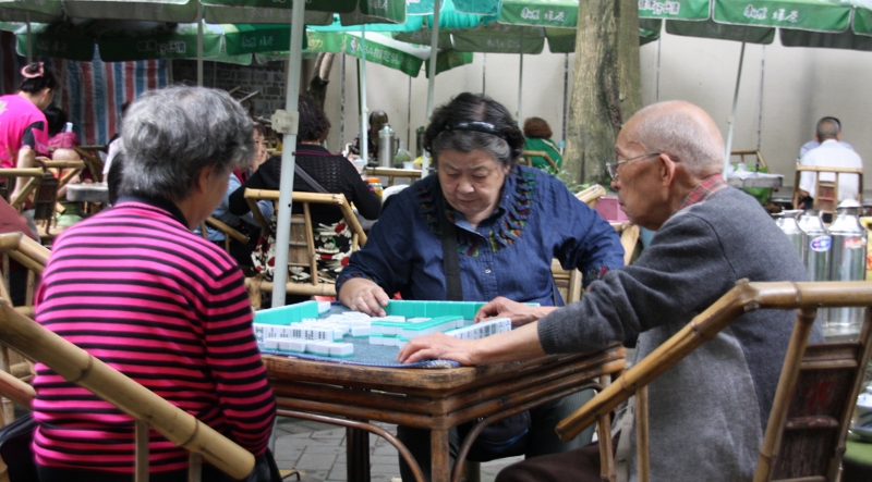 In den Tee Häusern wird auch gerne eine Runde Mahjong gespielt. Eine Freizeitbeschäftigung der Rentner.