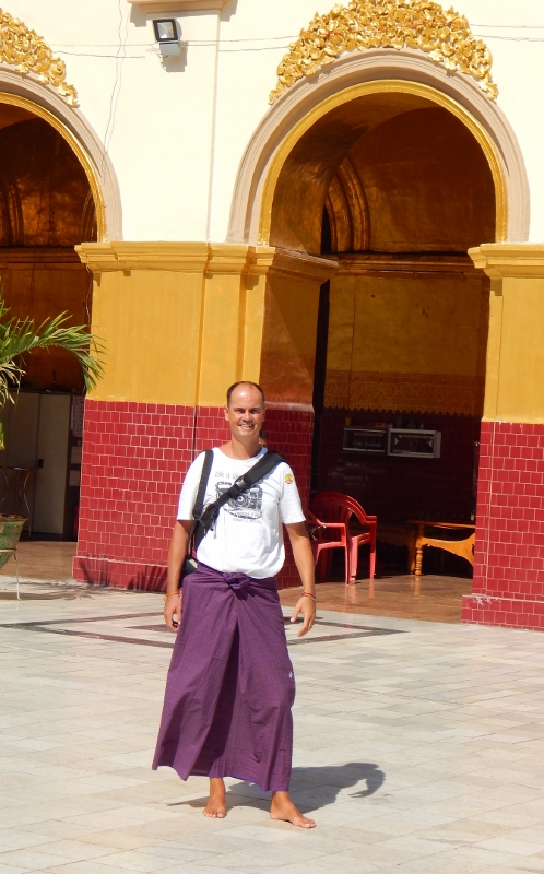 Carsten im traditionellen Longyi (Rock für Männer).