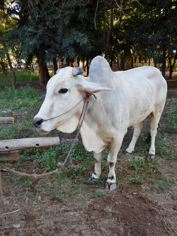 Auch die schönen weißen Kühe stehen hier überall in den Vorgärten.