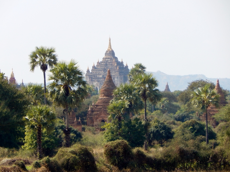 Die „Pyramide“ in der Ferne. Wunderschön ist, dass so die Stupas aus dem Jungle herausragen.