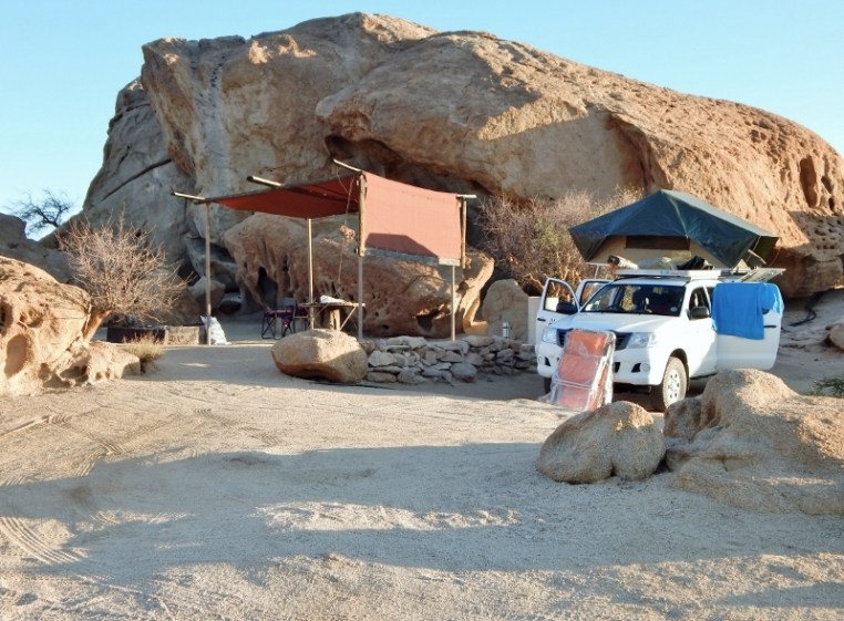 „Wüstenquell“ Schön gelegen direkt an einem großen Felsen. Morgens fegte unser der Ostwind fast weg.