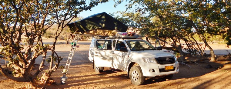 Unser Toyota Hilux Duble Cab with Rooftent from Windhoek, Africa Car Hire.