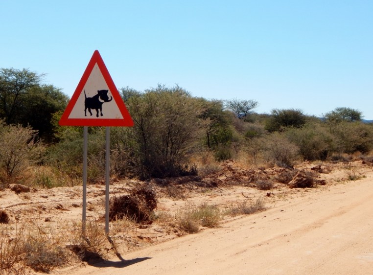 Warzenschweine sah man immer wieder an der Straße. Das Schild hatte also seine Berechtigung.