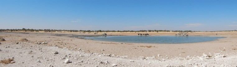 Der Etosha Nationalpark mit seiner riesigen (meist) trockenen Pfanne ist in Namibia ein Muss. Daher gibt es künstliche Wasserlöcher, wo sich die Tiere in der Trockenzeit sammeln. Gut für die Besucher.