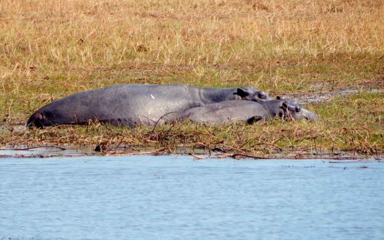 Eine Nilpferdmama mit ihrem Jungen.