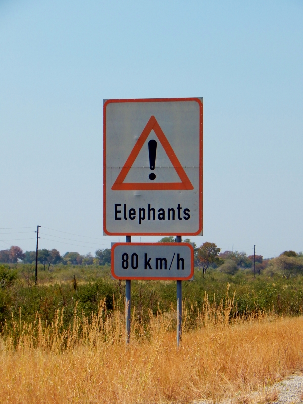 Das erste Schild in Botswana. Zäune gibt es hier grundsätzlich keine. Nur Veterinärszäune durch das ganze Land um die Maul und Klauenseuche abzuhalten. Jagen ist übrigens im ganzen Land verboten.