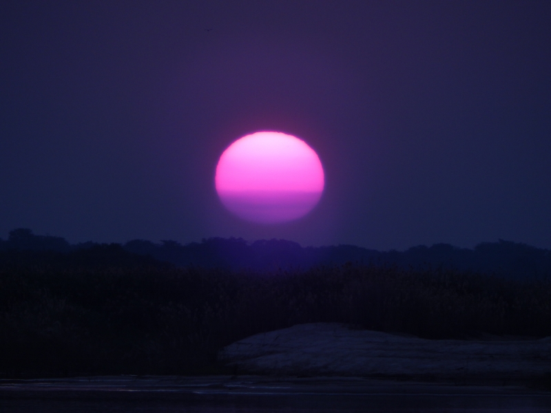 Die Sonne geht jeden Abend beeindruckend unter. Wie eine große Hubba Bubba Kaugummiblase.