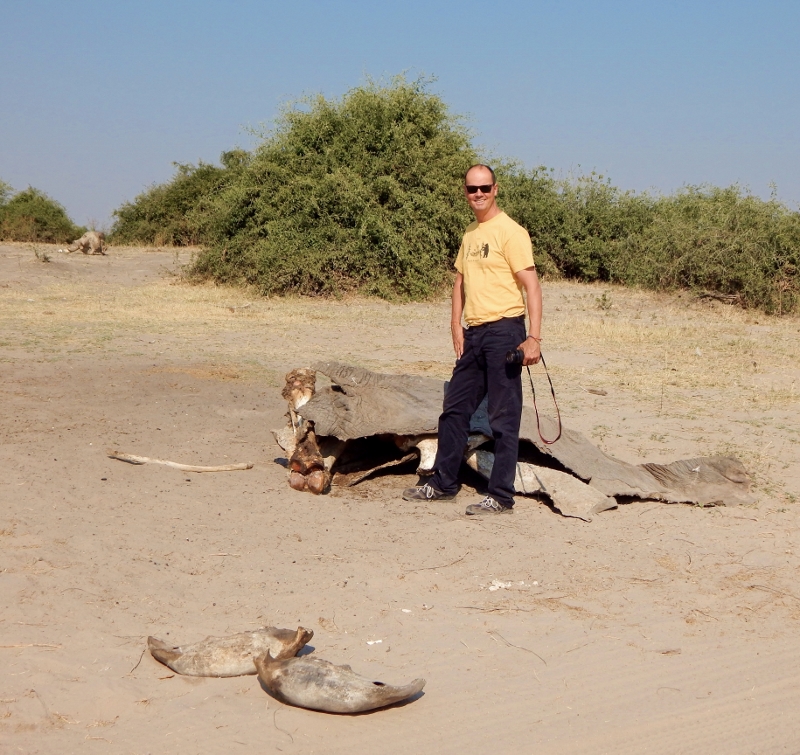 Nur noch die Haut und ein paar Knochen sind von dem Elefanten übrig geblieben.