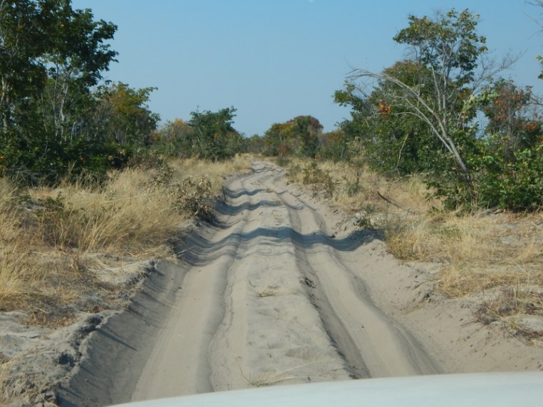Jetzt geht ein Stück durch den Chobe NP. Die Straßen in Botswana sind keine Pads mehr, sondern Sandpisten. Häufig auch sehr tiefer Sand. Das muss dann unser 4×4 tüchtig arbeiten.