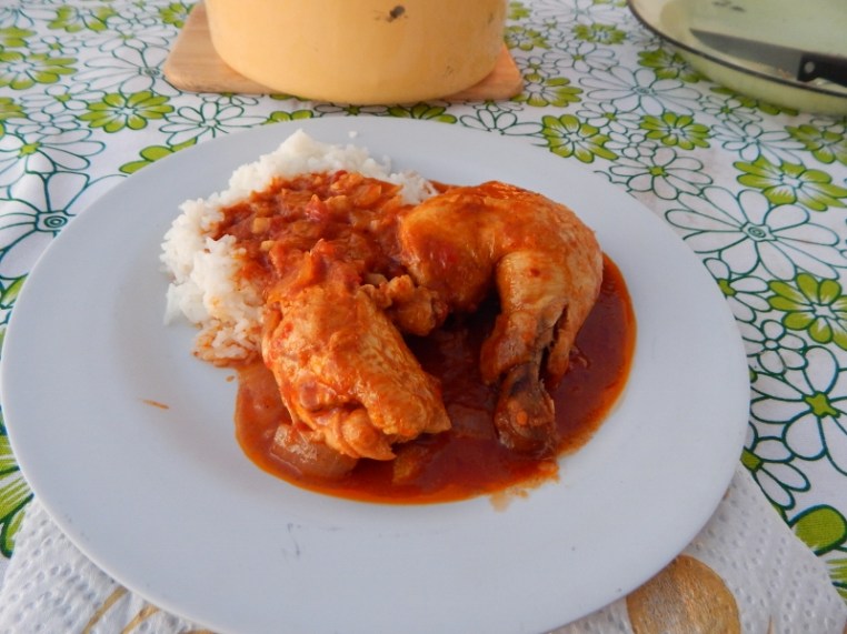 In Botswana schmeckte vor allem das Hühnchenfleisch. Hier mal mit roter Sauce.