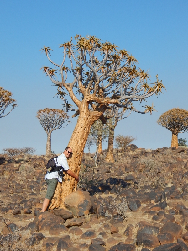 Carsten kuschelt nicht nur gerne mit Hunden und Warzenschweinen, auch Bäume müssen dran glauben.