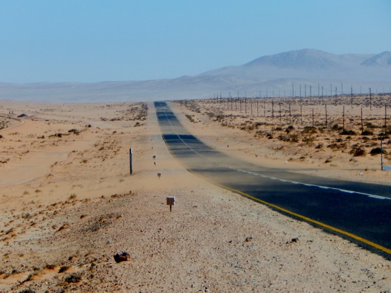 Der Wind fegt den Sand über die Straße.
