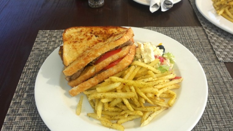 Sandwich findet man immer auf der Speisekarte. Gut für einen leichten Lunch. Natürlich dürfen die etwas weichen und meist ungesalzenen Pommes nicht fehlen.