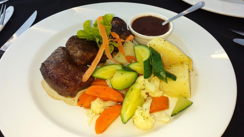 Hier mal eine Seltenheit. Hier mal richtig viel Gemüse auf dem Teller. Dazu Springbock.