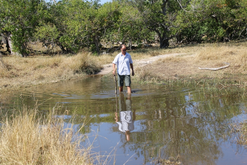 Sand ist schon eine echte Herausforderung, aber Wasser ist noch schwerer einzuschätzen. Der mit den längsten Beinen muss die Tiefe und den Untergrund testen. Aber Vorsicht vor Krokodilen und Flusspferden.