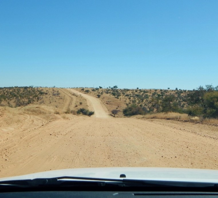 Weg nach Swakopmund. Typische Pad (Schotterstraße). Teerstraßen gibt es nur sehr wenige. Die meisten Straßen sind solche Pads.
